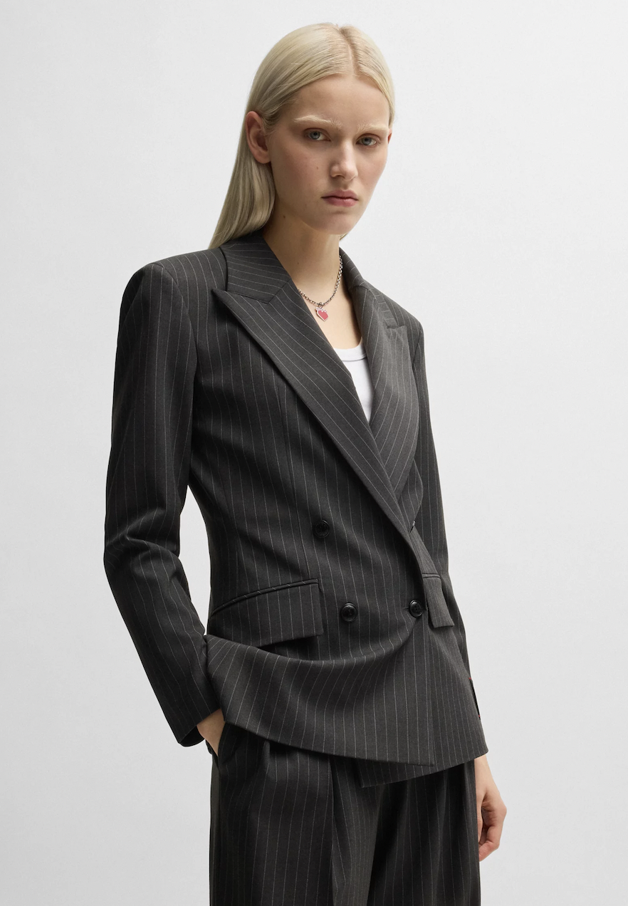 Why it’s great: Hugo Boss is known for precision tailoring and impeccable fits. Their suits have a sharp, professional look while still maintaining a feminine touch.